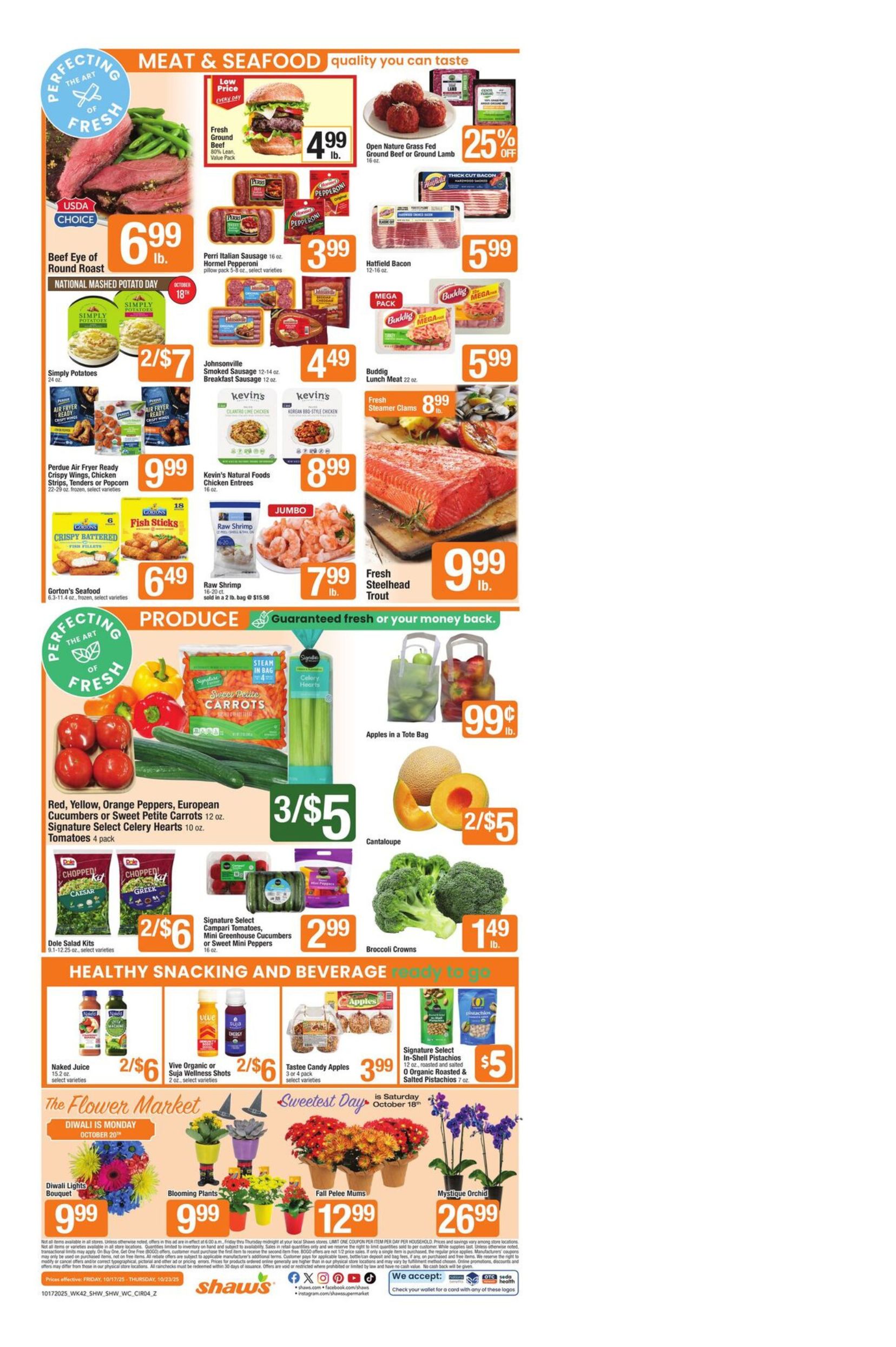 Check out the Shaws weekly ad for 17-23oct, 2025to find the best deals and discounts this week. The flyer is full of fresh grocery offers, household items, and more at great prices. Whether you want to save on produce, dairy, or snacks, the Shaws weekly ad helps you plan your shopping and get the most value. Don’t miss these limited-time deals to save money every time you shop.
